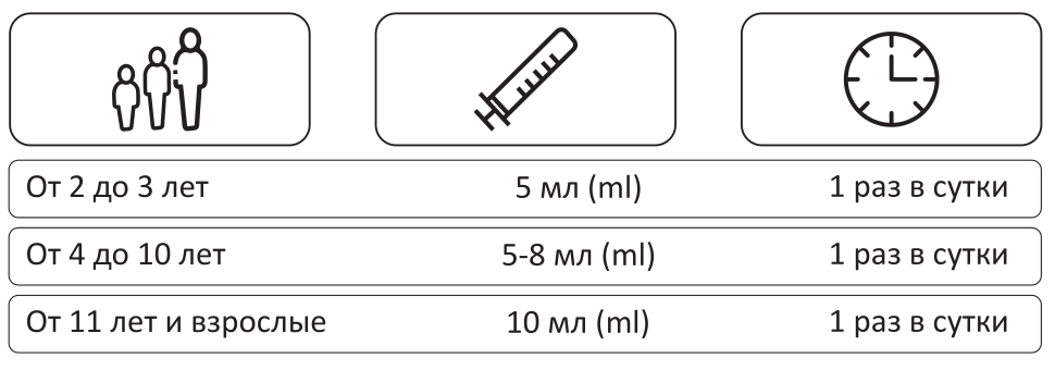 Рекомендуется потреблять в дневное время суток. Непосредственно во время еды или после еды. Перед употреблением флакон с сиропом тщательно встряхнуть!